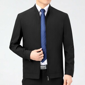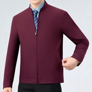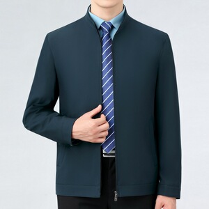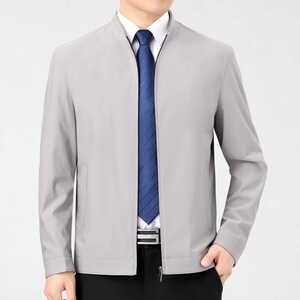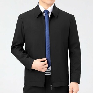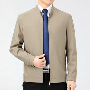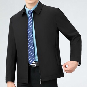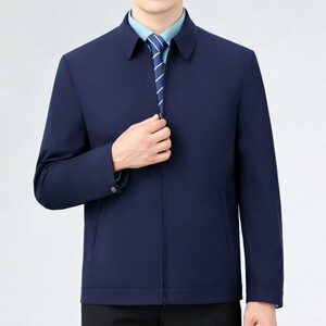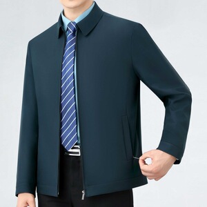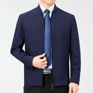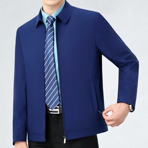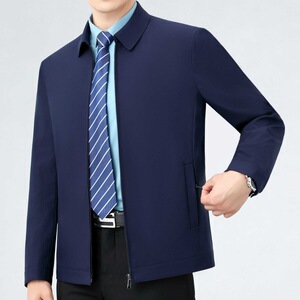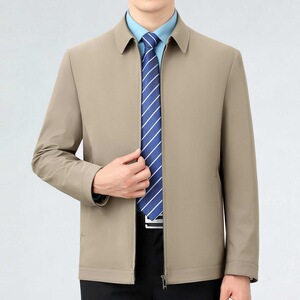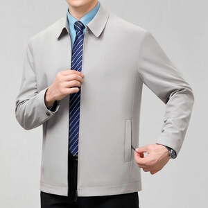 春と秋の男性用の新しいジャケット、中年ビジネスカジュアルマルベリーシルクジャケット、お父さんのラペル、メンズ高級トップス