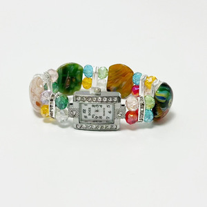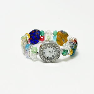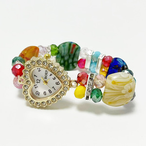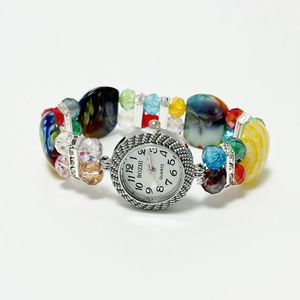 クロスボーダーカラフル大型千花ガラス時計ダイヤモンド付きブレスレットビーズフラワーブレスレット個性派新作ブレスレットアクセサリー