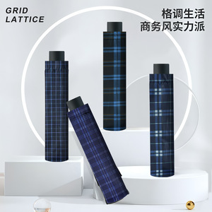 チベット青【手動傘】8骨晴雨傘-【55黒ゴム格子傘】