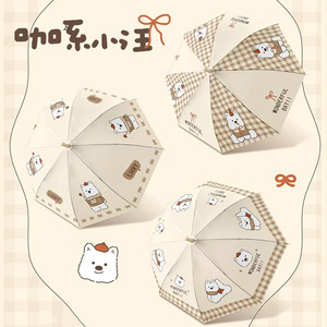 漫画ストレート傘8骨プリントストレート傘かわいい少女心学生ロング柄曲げフック傘手動傘傘傘