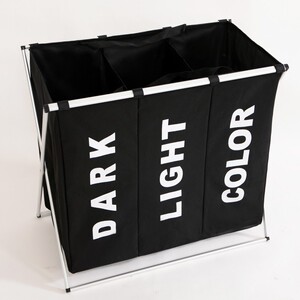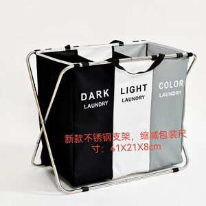 強化された厚みのあるアルミニウム合金フレームを備えた 3 コンパートメントの汚れた衣類バスケット (付属のバッグ付き)