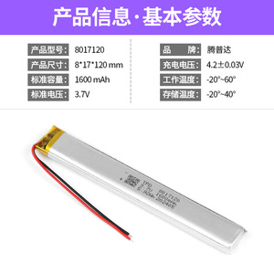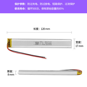 8017120 ポリマー リチウム電池 3.7V1600mAh センサー付きロング LED ライト モバイル電源 ソフトパック電池