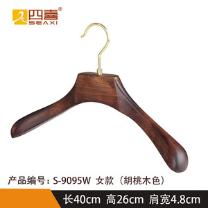 9095W レディース ウォールナット色 真鍮フック ブナ材 ワイドショルダーハンガー