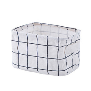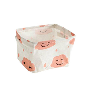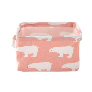 プリント綿麻持ち手収納バスケット雑物収納バスケット布芸デスクトップ化粧品収納ケース収納バスケット
