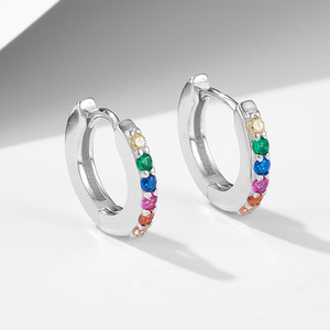 欧米のクロスボーダーS925純銀の円形の小さい色のジルコンの耳掛けのイヤリングの女性insの小さい衆の軽い豪華な小さい耳輪