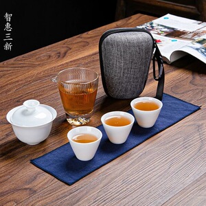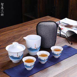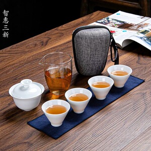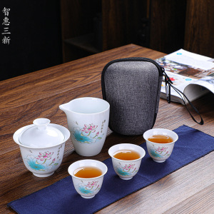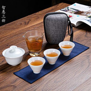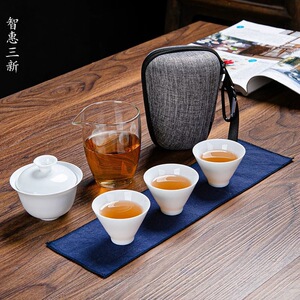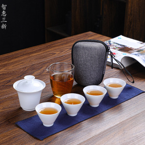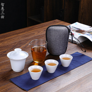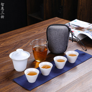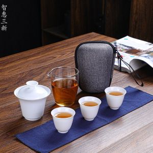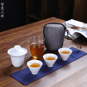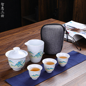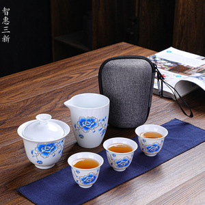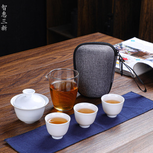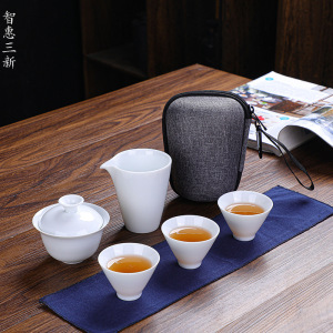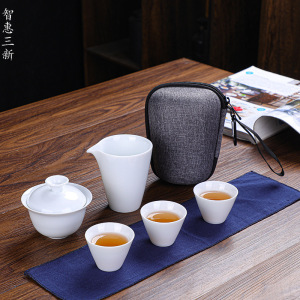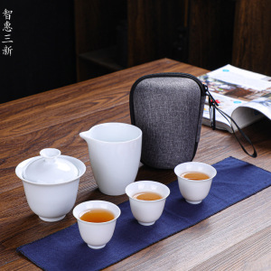 徳化陶旅行茶器セット ポータブルバッグ付き 急須と三杯 キャンプ用功夫茶器ギフトセット