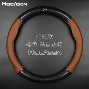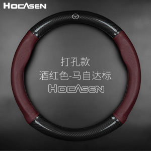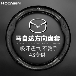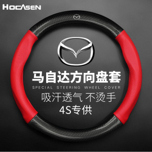 マツダレザーステアリングホイールカバー、Atez Xingchiカーボンファイバーハンドルバーカバー、オールシーズン対応のユニバーサル車のハンドルバーカバーに適しています。