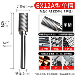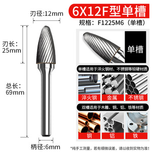 硬質合金回転やすりセット6mm柄単溝タングステン鋼合金フライス金属研磨ヘッドメーカー直販