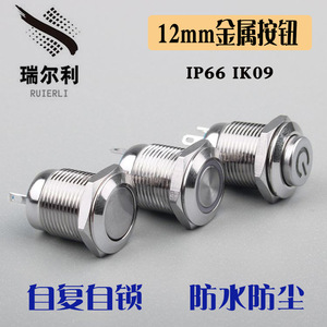 12mm金属ボタンスイッチセルフリセットセルフロック水平ヘッドランプレス電源マークled防水点動スイッチ24v