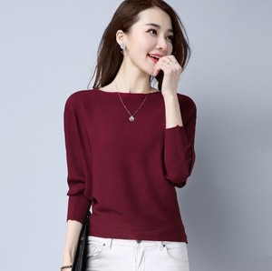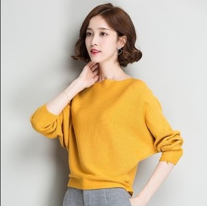 コウモリの袖のセーター2020春秋の新型のゆったりした学院の風の純色の頭の短い長袖のニットの底のシャツ