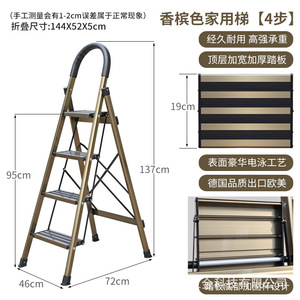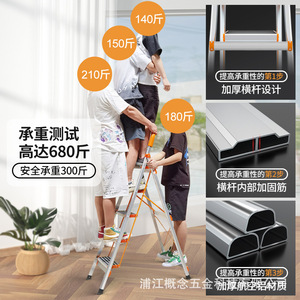 百佳宜アルミニウム合金折り畳み家庭用はしご厚手五歩はしご多機能はしご人字はしご滑り止めペダル銀色