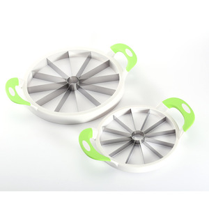 メーカー直売の果物切り器多機能ステンレスの新型大サイズの果物切り器は手で円形のスイカを押して卸売りを切ります。