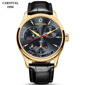 Carnival腕時計全自動機械時計ファッションファッション多機能夜光防水男性本革男性時計
