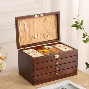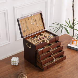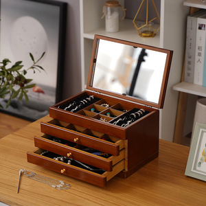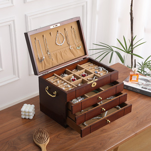 クロスボーダー無垢材結婚アクセサリーケースジュエリーケース大容量ロック付き中国式レトロピアスネックレスジュエリー収納ケース