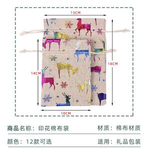 現物クリスマスポケット雪花綿麻ギフトバッグ箔押しロゴハロウィーン収納麻布袋卸売り