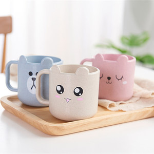 小麦わら子供の口のコップの漫画の熊の3色の乳幼児の乳の杯の赤ちゃんはコップを飲むことを学びます。