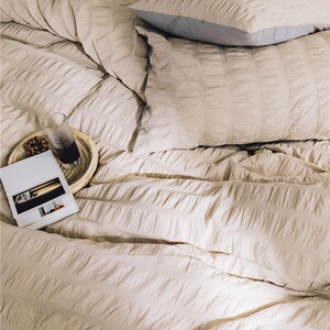 春夏棉泡糸四点セット無地シンプル棉超柔裸寝シーツ布団カバー1.5 \ 1.8mベッド用品
