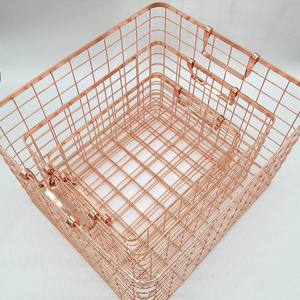 北欧風の取っ手付き収納バスケット金色の鉄芸収納バスケットバラ金大容量収納フレーム収納バスケット