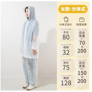 【増厚金】大人の白い女性の分体レインコート【上着レインパンツ】