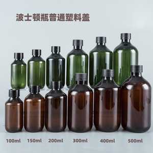 300ml ブラウンボストンボトル、R28 ブラックキャップ、ペット