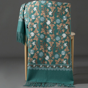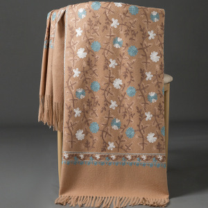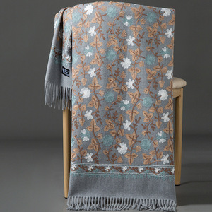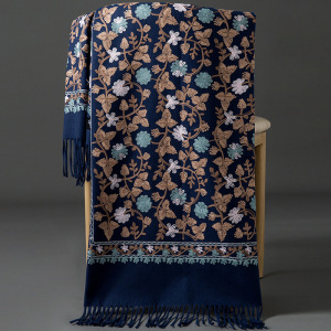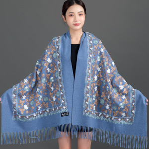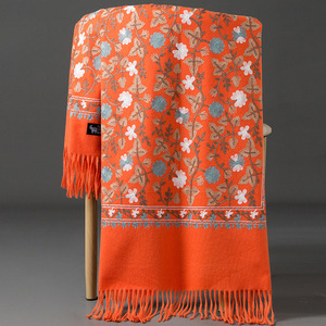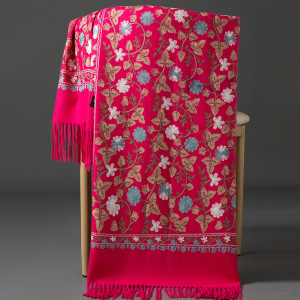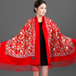 韓国風手刺繍スカーフ、銀葉花柄スカーフ、大紅色スカーフ、お母様用暖かい秋冬用女性ショール