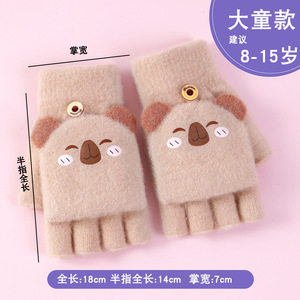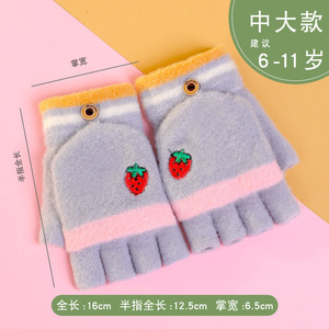 瑞雅raya冬保温児童手袋男の子女の子カバー半指両用手袋子供手袋卸売り