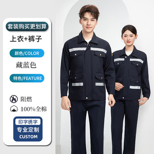 静電防止難燃作業服印logo純綿防熱耐高温反射電気溶接労働者労働保険服