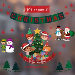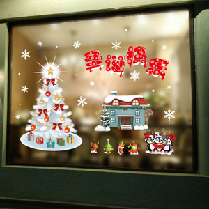 アマゾンの新型クリスマス静電は祝日の装飾ガラスを貼ってショーウインドーのシーンを貼ってサンタクロースの静電シールを配置します。