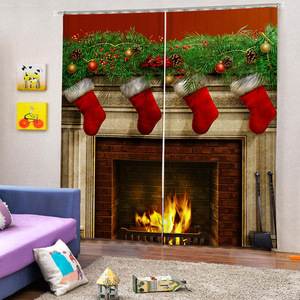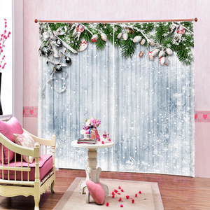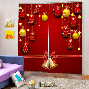 アマゾンクロスボーダークリスマスカーテンデジタルプリントクリスマス球星鈴飾りポリエステルカーテン