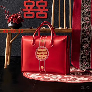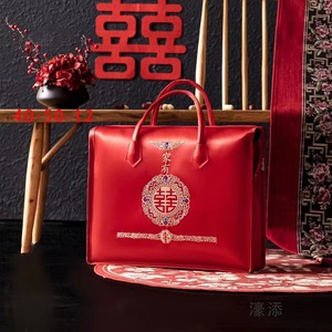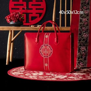 婚庆刺绣色丁牛津布红色伴手礼手提袋四件套包装结婚被子家纺包