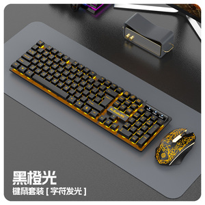 マムシkm 320有線キーマウスセット懸濁u + uオレンジ色の字透発光クラックゲームキーボードマウスクロスボーダー