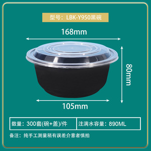 LBK-Y1050黒ボウル300セット (蓋付き)