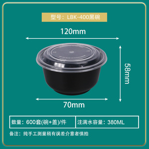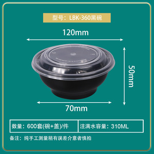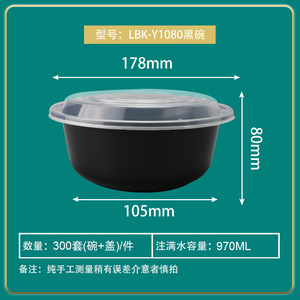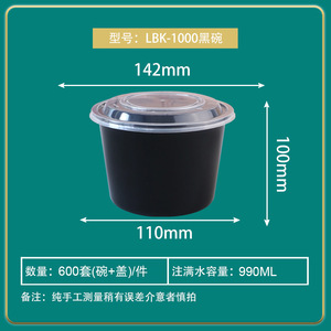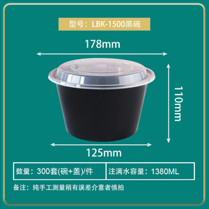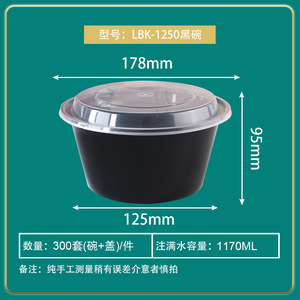 LBK-Y1200黒ボウル300セット (蓋付き)