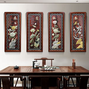 春夏秋冬掛け絵中国式客間ソファー背景壁装飾画レストラン壁面装飾四連玉彫刻壁画