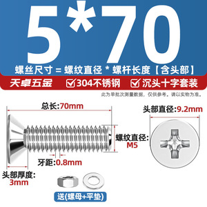304ステンレス十字沈頭ねじナットセットセット平頭ねじ釘糸平パッドM1-M12