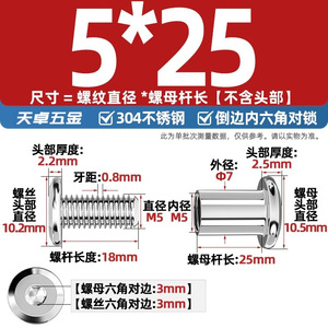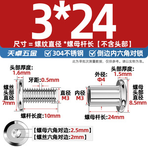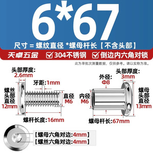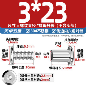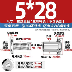 304ステンレスペアロックねじナット逆エッジ内六角子母家具接続クランプ突合せボルトM3-M8