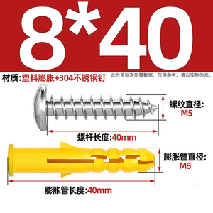 M8*40 (304ステンレス鋼なべ釘+拡張チューブ)-1セット