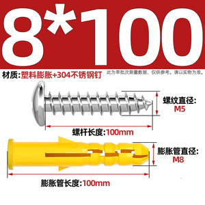 M8*100 (304 ステンレス鋼皿釘 + 拡張チューブ) - 1 セット