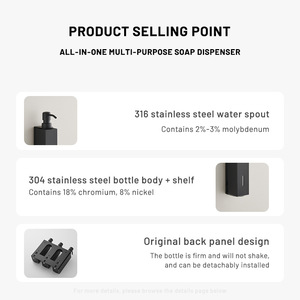 ホテルのバスルーム用304ステンレス鋼ソープディスペンサー、壁掛け式シャンプーとシャワージェルのプレスボトルの国境を越えた特別供給