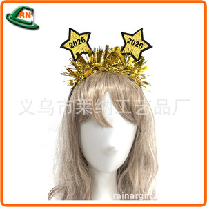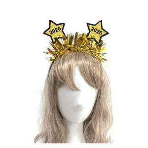 ライナークラフト新年ヨーロッパとアメリカの新年あけましておめでとうございます帽子クリスマス新年ゴールドとシルバーの五芒星 2026 ヘッドバンド