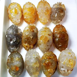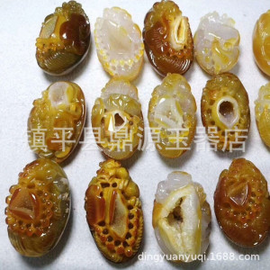卸売ブラジル産カルセドニー瑪瑙彫刻原石宝の穀、美しい色の中空貔貅翡翠のおもちゃ