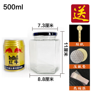 卸売り六稜蜂蜜瓶六角味噌汁瓶ガラス唐辛子味噌汁瓶ジャム缶瓶透明包装密封缶