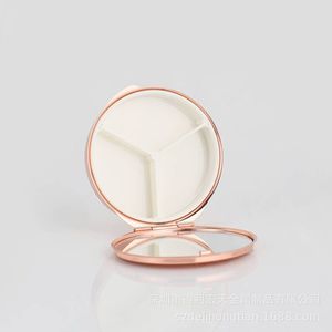 丸い三格の金属の薬の箱の小さい鏡の多格のハート型の四角形は携帯して簡単な錠剤の箱の創意のキャンディーを持ちます。