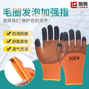 発泡テリー強化指労働保護手袋半掛ラテックス耐摩耗性滑り止め秋冬に冷凍庫保温手袋を厚くする