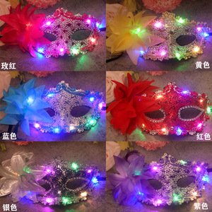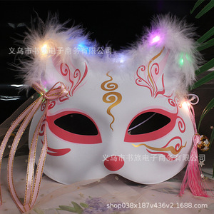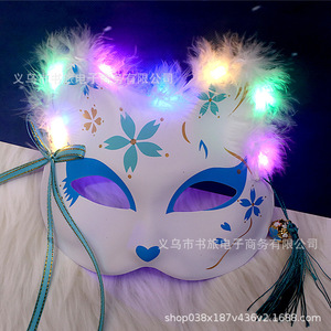 クロスボーダー発光マスク子供の仮面舞踏会マスク女性ハーフフェイスキツネハロウィン大人のパーティー小道具卸売