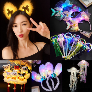 屋台のおもちゃが光るカチューシャ夜市の爆発的な屋台の子供のおもちゃは小さい贈り物の頭飾りのバーのカチューシャを押します。