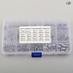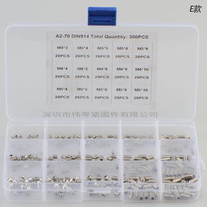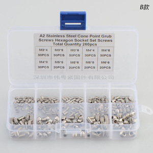 箱入り 200/260/250/300 個ステンレス鋼 304 DIN914 六角穴付きテーパーエンド止めねじセット