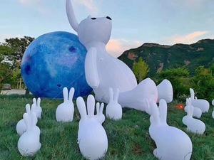 中秋節用の空気注入式月球模型、特注の大型発光月灯、玉兎、宇宙飛行士、装飾品