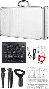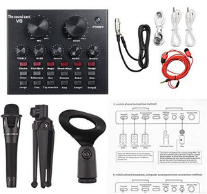 V8 サウンドカード 1 個、35 ブラケット 1 個、金属ベース 1 個、吹き出しスクリーン 1 個、ショックマウント 1 個、防風綿 1 個、マイク 1 個、XLR ケーブル 1 本