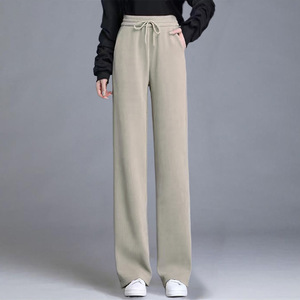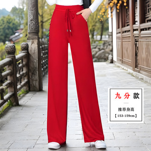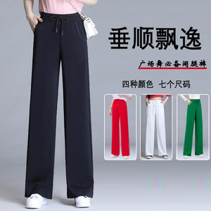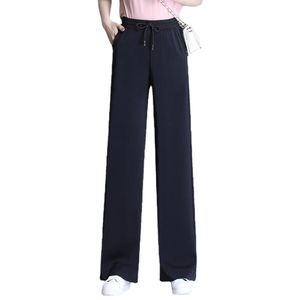 女性のためのワイドレッグパンツ 2025 夏の新しいハイウエストストレートルーズレディースパンツスリムフロアレングスブラックカジュアルパンツ女性のための